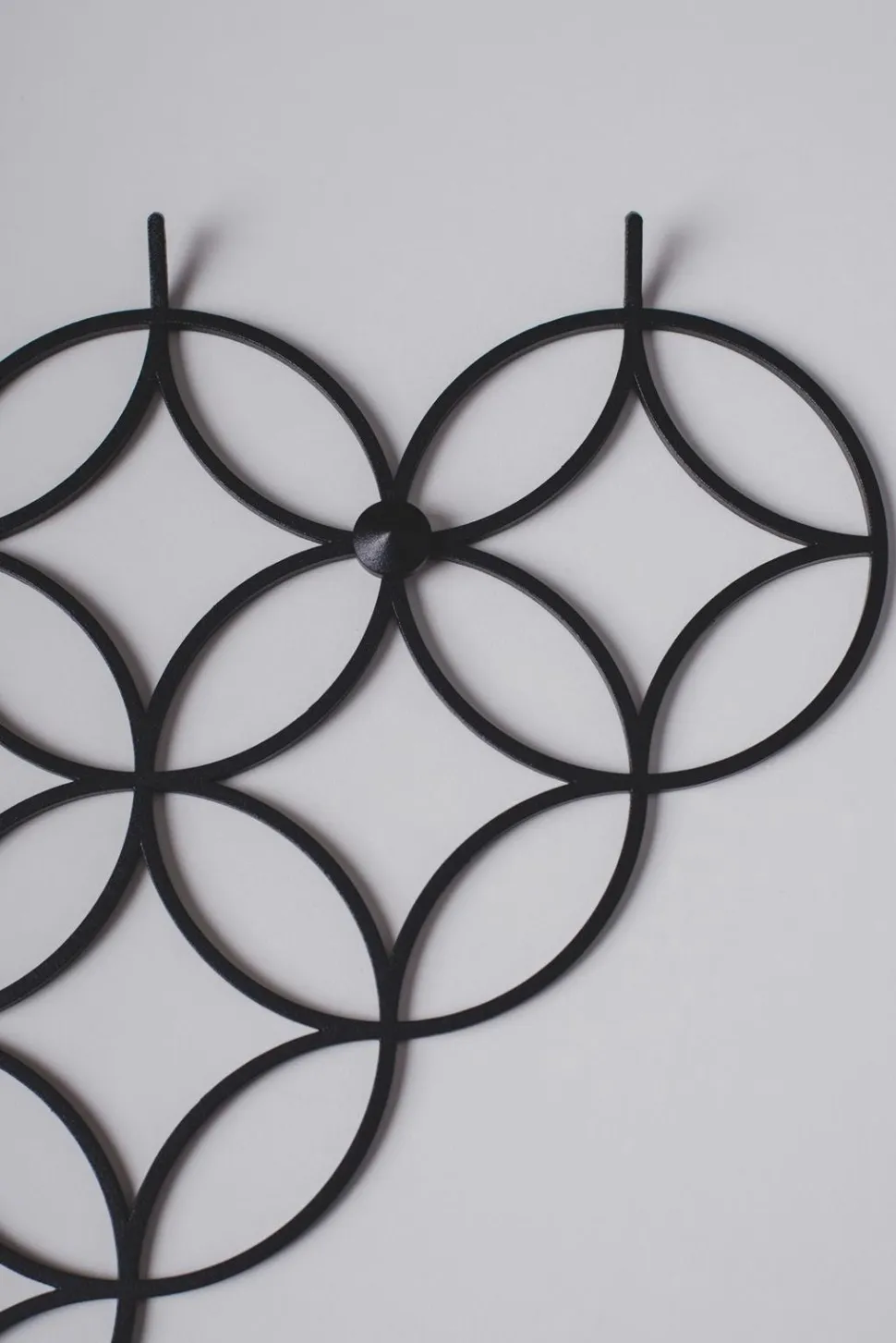 Całość, nieprzemijalność, nieskończoność. Wieszaki i półki z serii Holo to hołd dla koła – najprostszej i zarazem najbardziej złożonej figury geometrycznej. Produkty z tej serii są ponadczasową dekoracja każdej przestrzeni. Wycinany laserowo, stalowy, malowany proszkowo. Waga: 0,5kg
