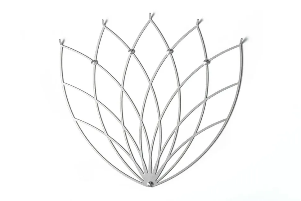Piękno, czystość, doskonałość. Zawsze nieskazitelny gdy kwitnie pośród bagien, symbolizujący odrodzenie i triumf wytrwałości – kwiat lotosu. Odkryj wieszaki z serii Lotos i wprowadź harmonię do swoich wnętrz. Wycinany laserowo, stalowy, malowany proszkowo. Waga: 0,6kg