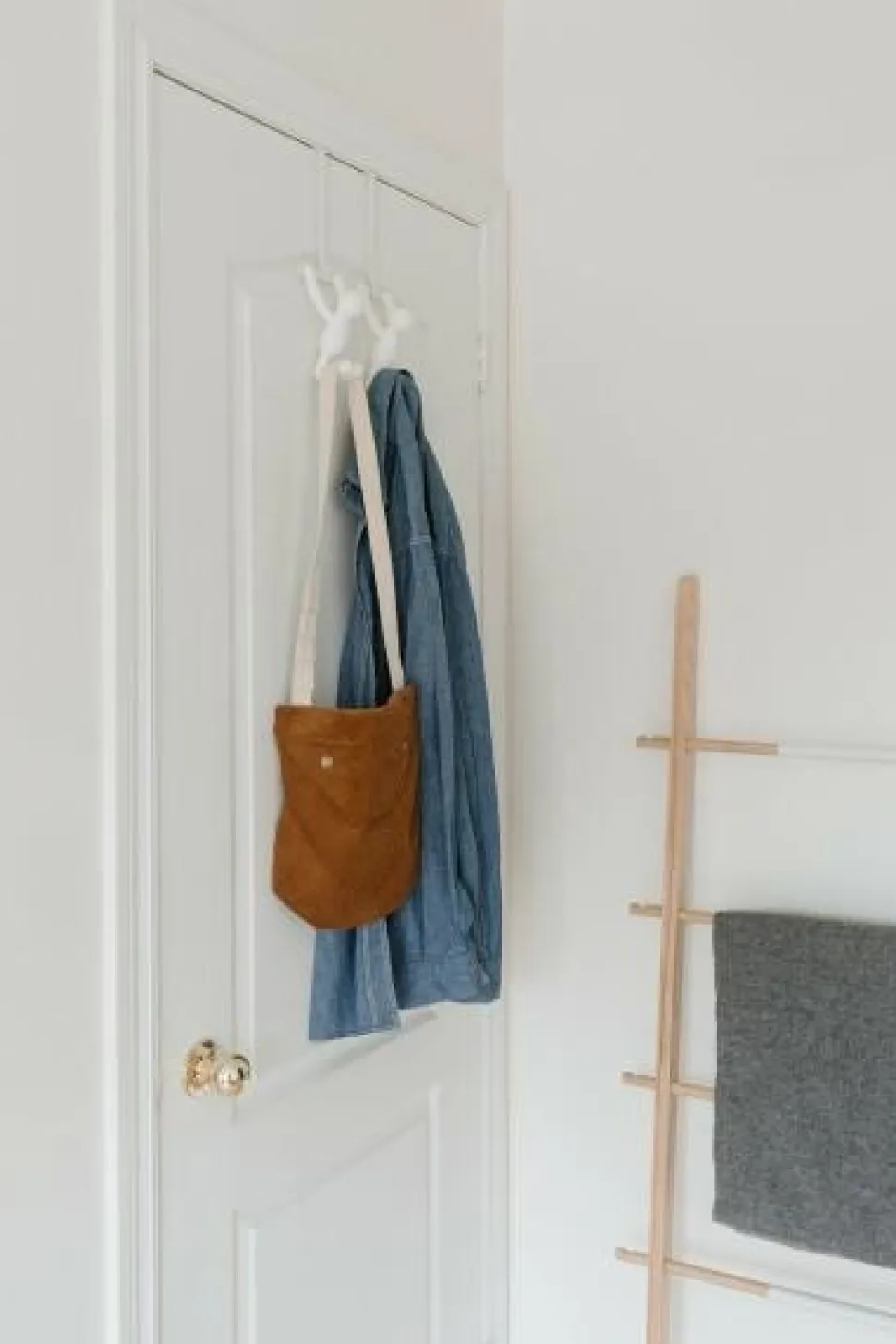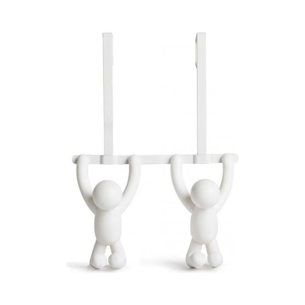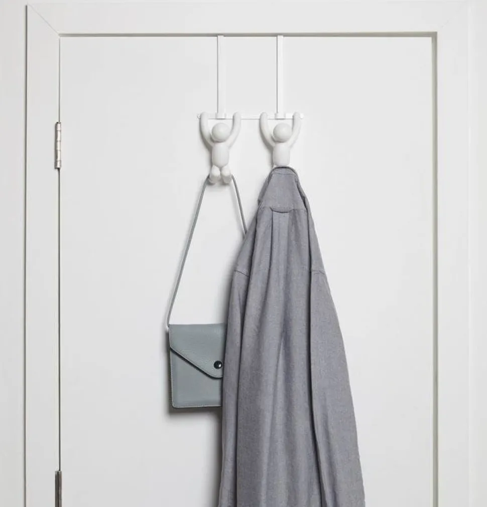 Zdobądź przestrzeń i wystrój od razu dzięki temu zabawnemu hakowi firmy Umbra, który można zamontować nad drzwiami. . BUDDY Over-the-Door tym razem występuje jako hak na drzwiach, świetny do przechowywania takich rzeczy jak kapelusze, szaliki, płaszcze i torebki. Ten element dekoracyjny ma bardziej aktywny wygląd niż typowy wieszak na drzwi, ponieważ Buddy wygląda jakby pozostawał w ruchu. Formowany z matowym wykończeniem i dostępny w kolorze czarnym lub białym, przeznaczony do drzwi o grubości do 3,8cm i wymiarach 31,8 x 21,6 x 10,8 cm.