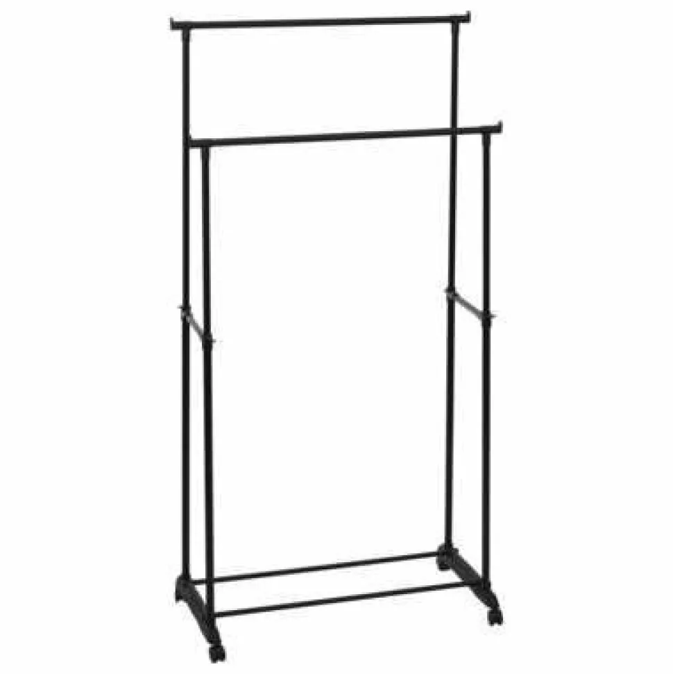 Wieszak na ubrania podwójny czarny to idealne rozwiązanie dla osób, które potrzebują dodatkowej przestrzeni na przechowywanie odzieży. Jego wymiary wynoszą 80 cm szerokości, 43 cm głębokości oraz 160 cm wysokości, co pozwala na wygodne umieszczenie wieszaka w różnych pomieszczeniach. Dzięki rozsuwanej szerokości (110 cm, 135 cm, 160 cm), wieszak można dostosować do ilości ubrań, które chcemy na nim zawiesić, co czyni go bardzo praktycznym i elastycznym w użyciu.