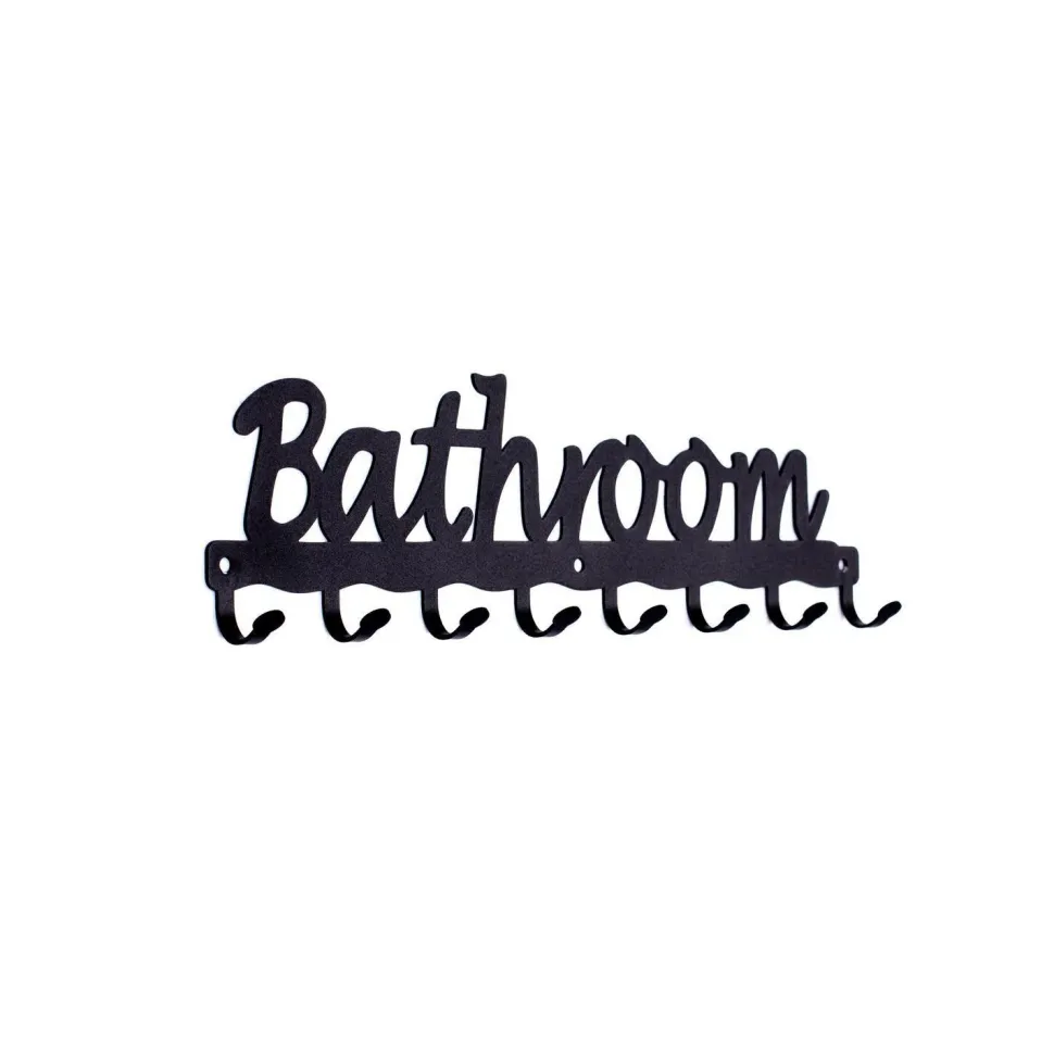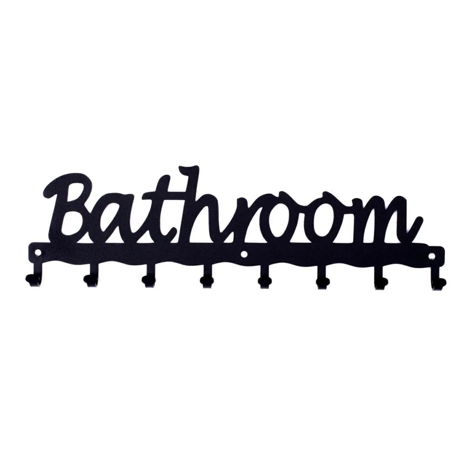 Wieszak ścienny Bathroom dedykowany jest do łazienki oraz toalety. Nowoczesny, metalowy wieszak malowany proszkowo jest odporny na uszkodzenia. Produkt posiada aż 8 haczyków o maksymalnym obciążeniu 3kg każdy. Wieszak jest wycinany metodą laserową, można na nim wieszać wiele ręczników lub szlafroków. Precyzyjnie wycięty napis nawiązuje do miejsca przeznaczenia wieszaka. Produkt dostępny jest w dwóch kolorach więc jest uniwersalnym rozwiązaniem do każdego stylu łazienki lub toalety. Maksymalne obciążenie listwy to 24kg. Do wieszaka załączany jest zestaw montażowy, który składa się z kołków, zaślepek i śrubek Wysokość: 12cm Szerokość: 40cm.