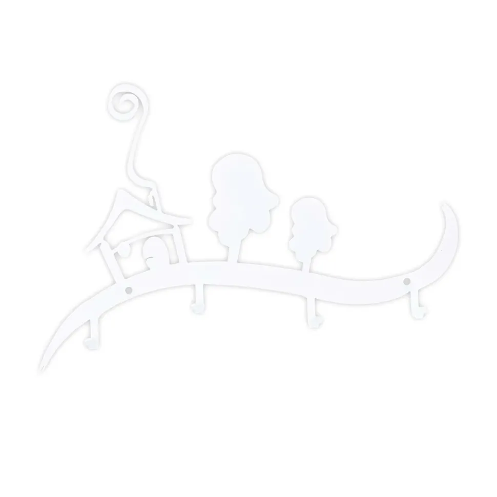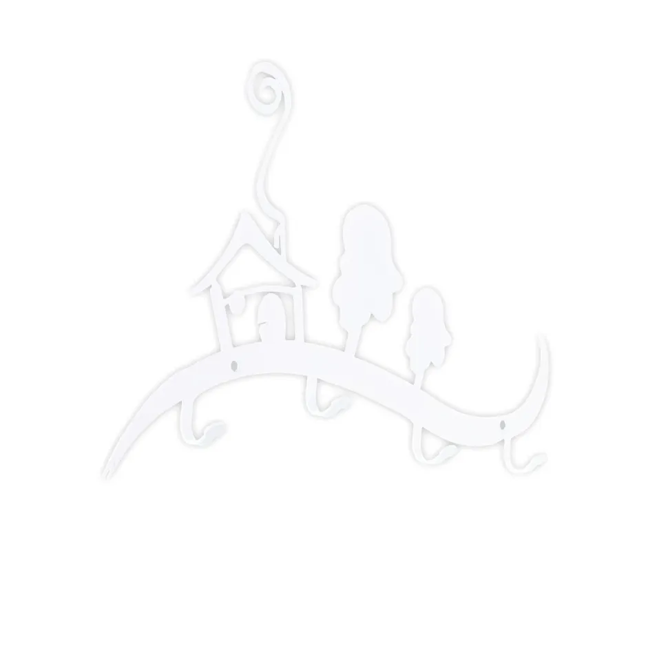 Wieszak ścienny Domek jest idealnym rozwiązaniem do przedpokoju. Stylowy wieszak z motywem domku oraz drzew ociepli każde wnętrze i pomoże stworzyć przyjazną atmosferę mieszkania. Wycinane laserowo elementy wieszaka są bardzo trwałe, odporne na zarysowania oraz zabrudzenia. Na pofalowanej listwie wieszaka zostały umieszczone 4 haki , o obciążeniu 3kg każdy, na których można powiesić klucze, torebki lub kurtki. Listwa dostępna jest w dwóch kolorach. Maksymalne obciążenie listwy to 12kg. Do wieszaka załączany jest zestaw montażowy, który składa się z kołków, zaślepek i śrubek. Wysokość: 28cm Szerokość: 41cm.