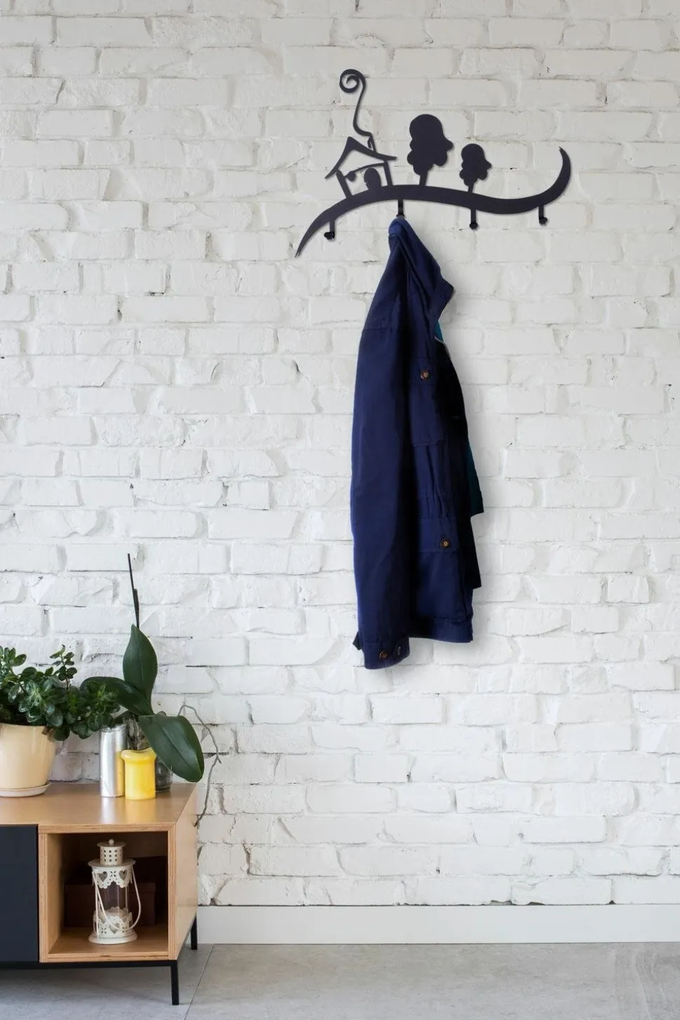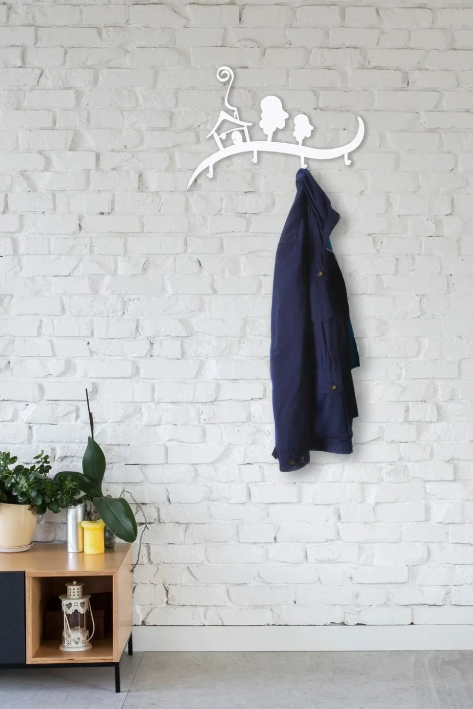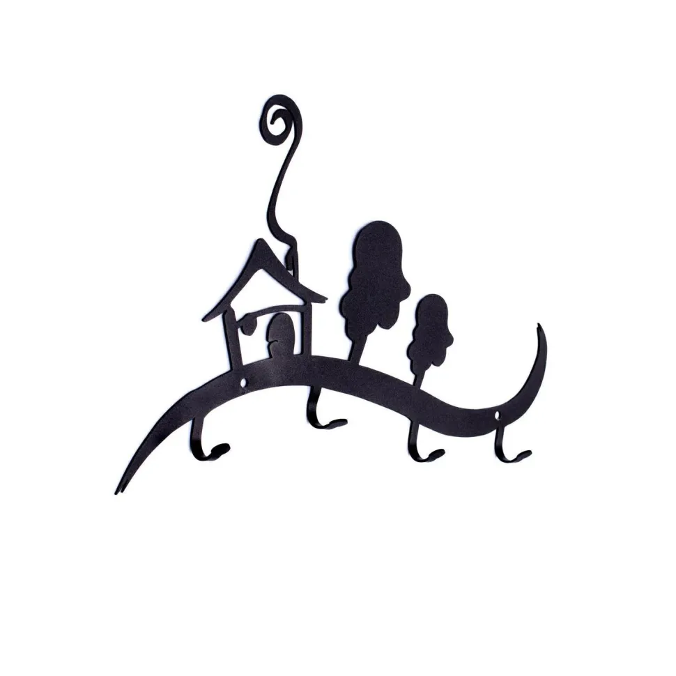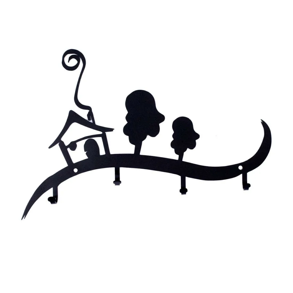 Wieszak ścienny Domek jest idealnym rozwiązaniem do przedpokoju. Stylowy wieszak z motywem domku oraz drzew ociepli każde wnętrze i pomoże stworzyć przyjazną atmosferę mieszkania. Wycinane laserowo elementy wieszaka są bardzo trwałe, odporne na zarysowania oraz zabrudzenia. Na pofalowanej listwie wieszaka zostały umieszczone 4 haki , o obciążeniu 3kg każdy, na których można powiesić klucze, torebki lub kurtki. Listwa dostępna jest w dwóch kolorach. Maksymalne obciążenie listwy to 12kg. Do wieszaka załączany jest zestaw montażowy, który składa się z kołków, zaślepek i śrubek.Wysokość: 28cmSzerokość: 41cmMax. ilość sztuk w kartonie:1Wymiary kartonu:35cm x 49cm x 4cmWaga opakowania: 2kg