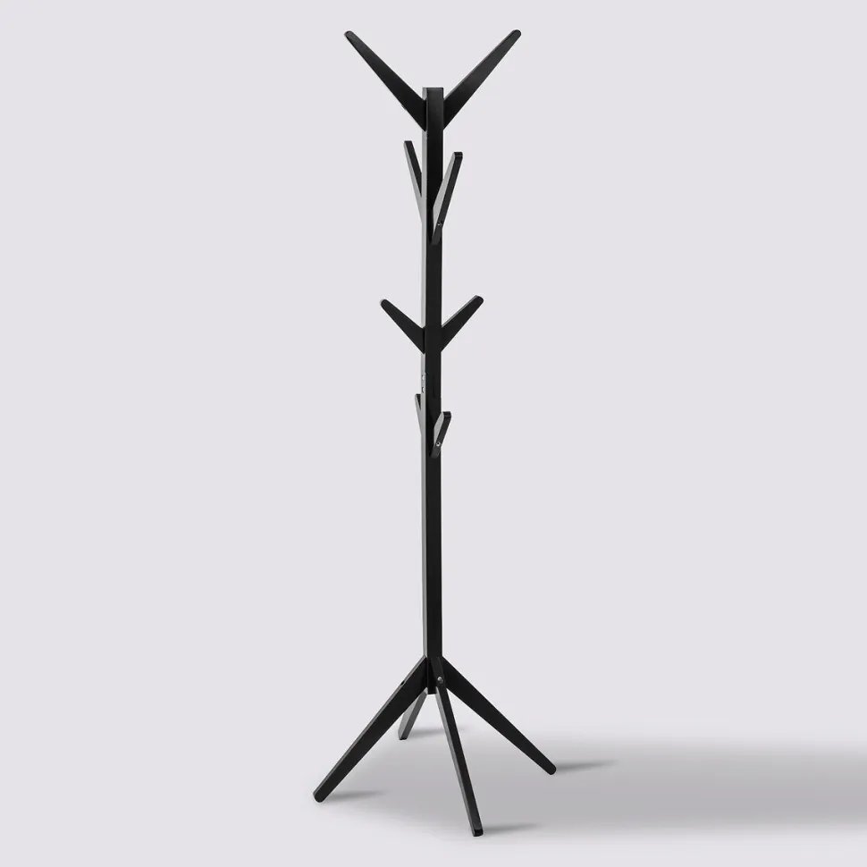 Czarny kolor wieszaka nadaje mu elegancji i sprawia, że doskonale komponuje się z nowoczesnym wystrojem wnętrza. Cztery smukłe nogi, na których stoi wieszak, dodają lekkości konstrukcji, jednocześnie zapewniając stabilność.Wieszak posiada 8 haczyków rozmieszczonych na różnych wysokościach, co ułatwia organizację i zabezpiecza przed nachodzeniem ubrań na siebie. Wybierz nasz wieszak Porte i zorganizuj swoją przestrzeń!