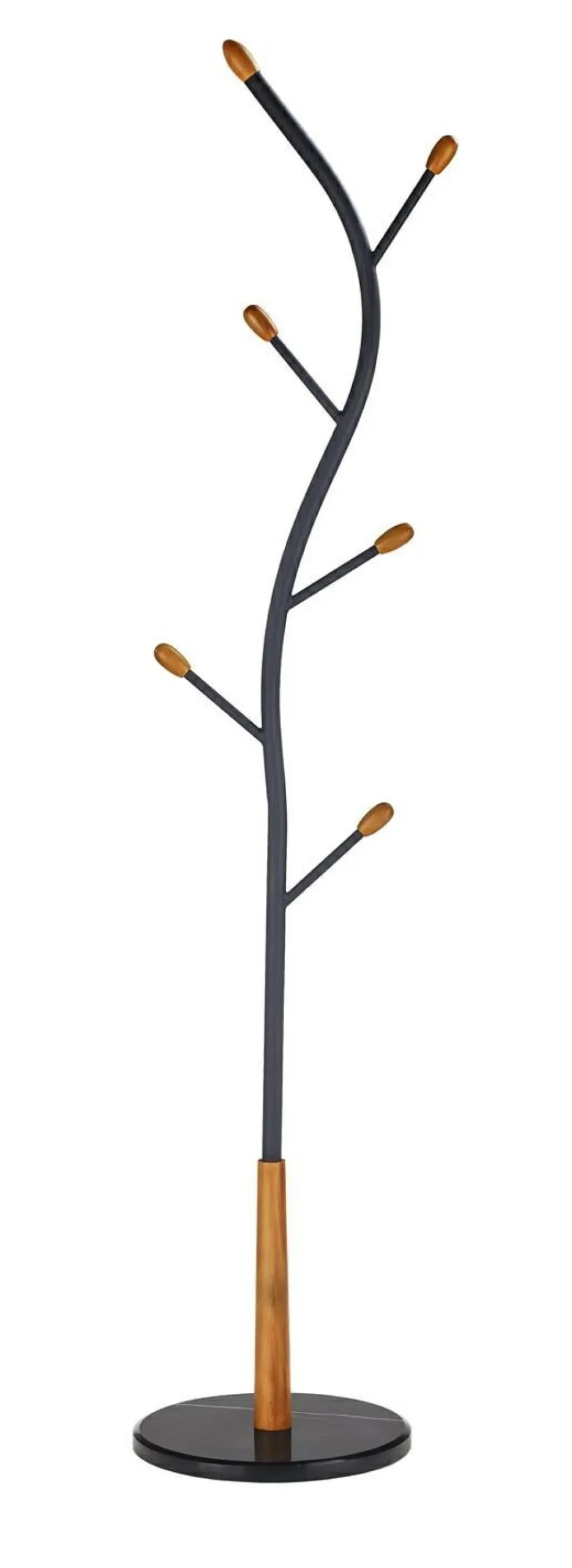 WieszakTuyau – Stojący wieszak na ubrania | Intesi Dodaj idealny akcent funkcjonalności do każdego pomieszczenia dzięki wieszakowi Tuyau. Stojący wieszak na ubrania jest wykonany z połączenia malowanej proszkowo stali, litego drewna oraz marmuru, a dodatkowo jest wykończony w kolorze czarnym, co nadaje mu nowoczesnego charakteru. Witamy w świecie wygody z wieszakiem Tuyau. Przestronna konstrukcja zapewnia idealne środowisko dla odzieży i akcesoriów, zapewniając najwyższy porządek i organizację. Wysokość 186 cm sprawia, że dzięki temu eleganckiemu i stylowemu wieszakowi nigdy nie zabraknie Ci miejsca do przechowywania. Konstrukcja ze stali i drewna zapewnia trwałość i solidność, dzięki czemu jest w stanie utrzymać nawet największe płaszcze i kurtki, a eleganckie połączenie kolorów sprawia, że przestrzeń wygląda schludnie i nowocześnie. Zawieś swoją kolekcję ubrań, torebek, toreb, kurtek i szalików w jednym wygodnym i niezawodnym miejscu dzięki wieszakowi Tuyau. Spraw, aby ubieranie się stało się najważniejszym momentem dnia dzięki temu niesamowitemu wieszakowi. Kup wieszakTuyau już dziś i ułatw sobie życie! O tym warto pamiętać! Lekka i wytrzymała konstrukcja Maksymalne wykorzystanie miejsca w garderobie dzięki kompaktowym wymiarom wieszaka Ekologiczny i trwały materiał Elegancki i nowoczesny wygląd idealny do każdego stylu wystroju domu