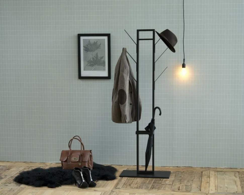 Wieszak Vinson II został zrobiony z metalu pomalowanego proszkowo na czarno. Wieszak składa się z sześciu uchwytów, na których możemy powiesić kurtki lub torby. Jeden uchwyt jest w stanie wytrzymać obciążenie do 6kg. Poniżej uchwytów został zamontowany uchwyt na parasole. Dzięki umieszczeniu pod nim, małego metalowego zbiorniczka, woda z parasola nie rozlewa się po podłodze, lecz zostaje w przeznaczonym na nią miejscu. Waga: 10,6 kg.
