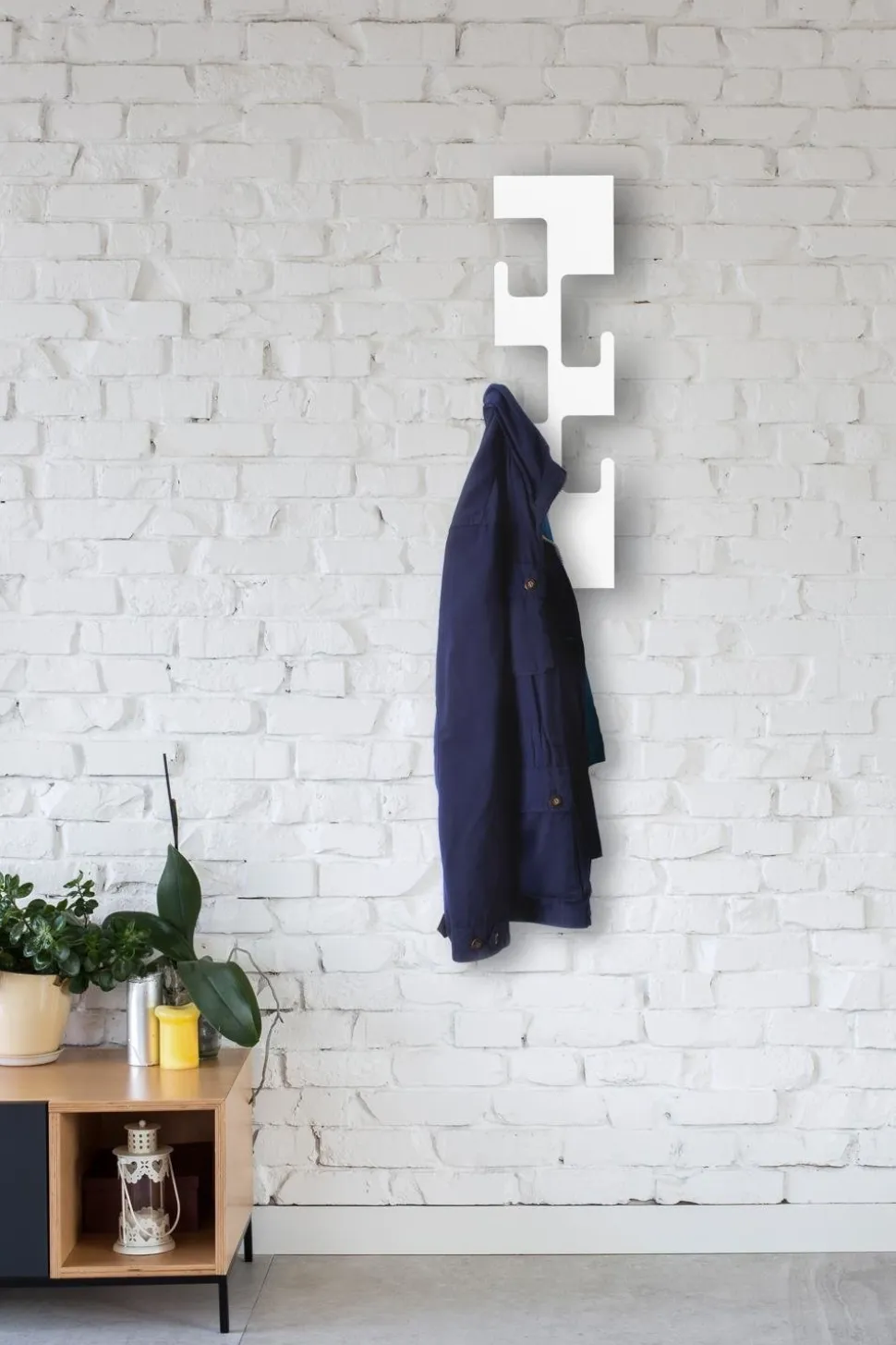 Wieszak Zip wykonany został z metalu malowanego proszkowo w półmatowym wykończeniu. Prosta forma przypomina suwak co sprawia, że wieszak nabiera nowoczesnego wyrazu i będzie wyglądał interesująco w każdym pomieszczeniu. Wieszak ma lekko trójwymiarową formę, posiada 4 haczyki, które zostały zaprojektowane w taki sposób aby ułatwić utrzymanie porządku w pomieszczeniu.Do wieszaka załączony jest zestaw montażowy, składający się z 4 kołków, 4 śrubek i 4 zaślepek