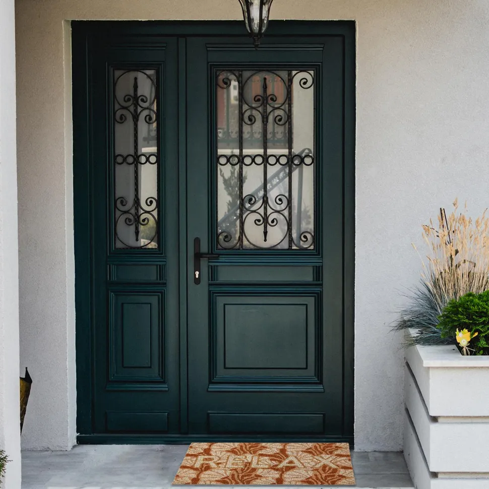 Subtelny florystyczny wzór oraz biały napis „Relax” dodają wycieraczce Coco Relax wyjątkowego charakteru i elegancji. Design ten wprowadza do wnętrza przyjemną atmosferę spokoju i gościnności, tworząc ciepłe powitanie dla każdego gościa. Dzięki swojemu estetycznemu wyglądowi, wycieraczka Coco Relax doskonale komponuje się z różnorodnymi stylami aranżacyjnymi, od klasycznego po nowoczesny.