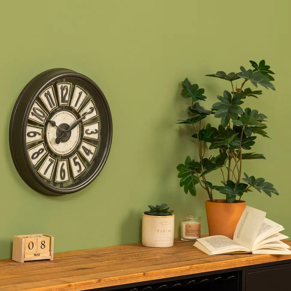 - Brązowy kolor zegara i jego styl vintage dodadzą charakteru każdemu pomieszczeniu.
