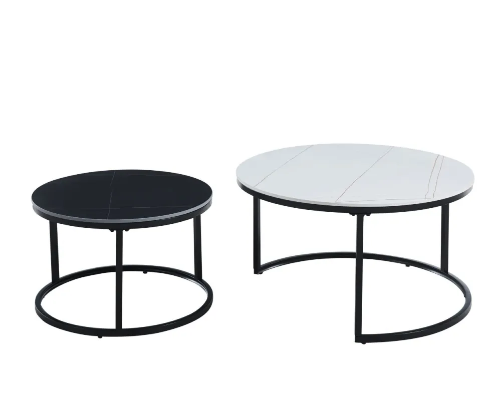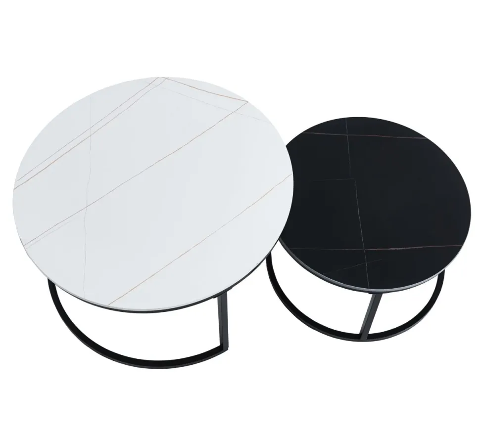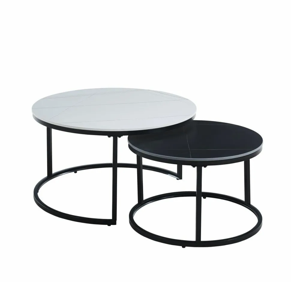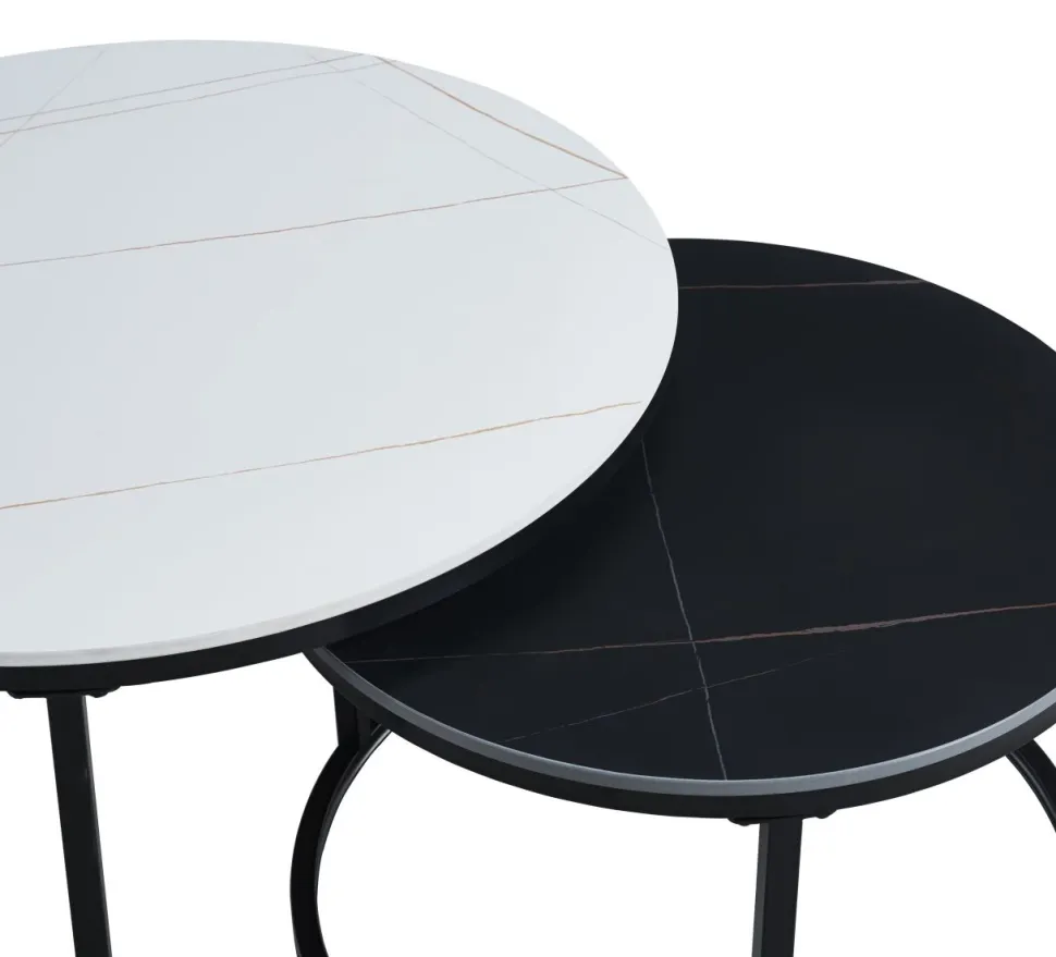 Zestaw 2 stolików kawowych Silas to idealne rozwiązanie dla osób poszukujących eleganckiego i funkcjonalnego dodatku do swojego salonu. Blaty wykonane z matowej ceramiki w kolorze białym i czarnym ze wzorem marmuru dodają wnętrzu nowoczesnego charakteru, jednocześnie łatwo komponując się z różnymi stylami aranżacji.