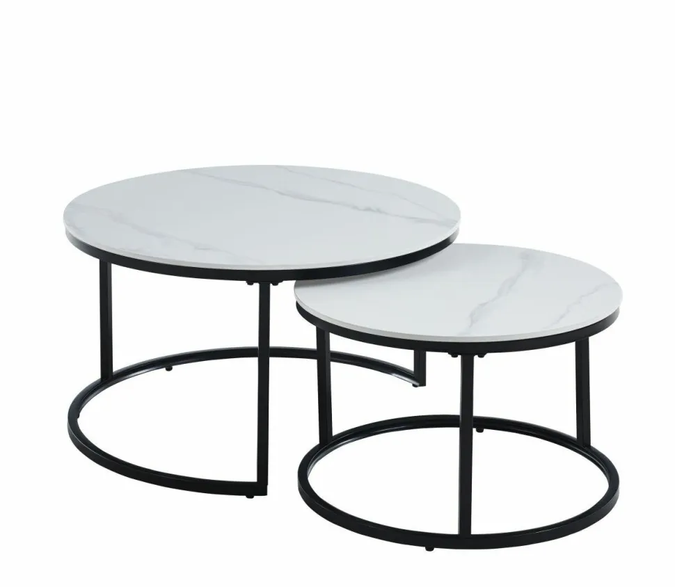 Blaty wykonane z ceramiki imitującej biały marmur dodają im wyrafinowanego charakteru, jednocześnie będąc łatwymi w utrzymaniu czystości. Nogi stolików wykonane z metalu malowanego proszkowo w kolorze czarnym zapewniają stabilność i trwałość.