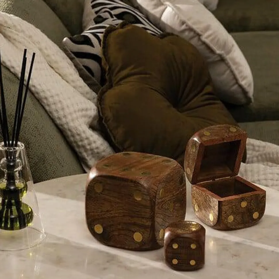 Zestaw 3 kostek dekoracyjnych Roger wykonanych z drewna mango