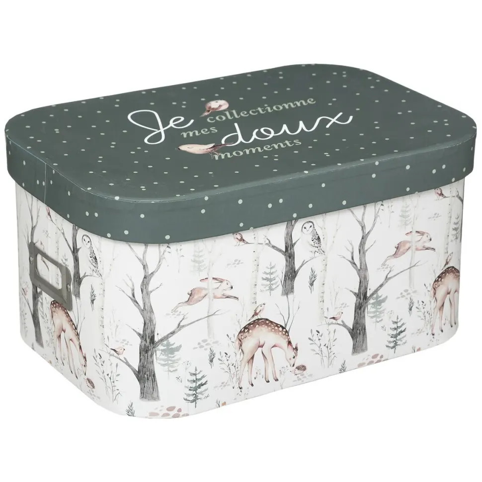 Szukasz dekoracyjnego i praktycznego dodatku do pokoju dziecięcego? Wybierz zestaw trzech pudełek do przechowywania Atmosphera z motywem lasu.