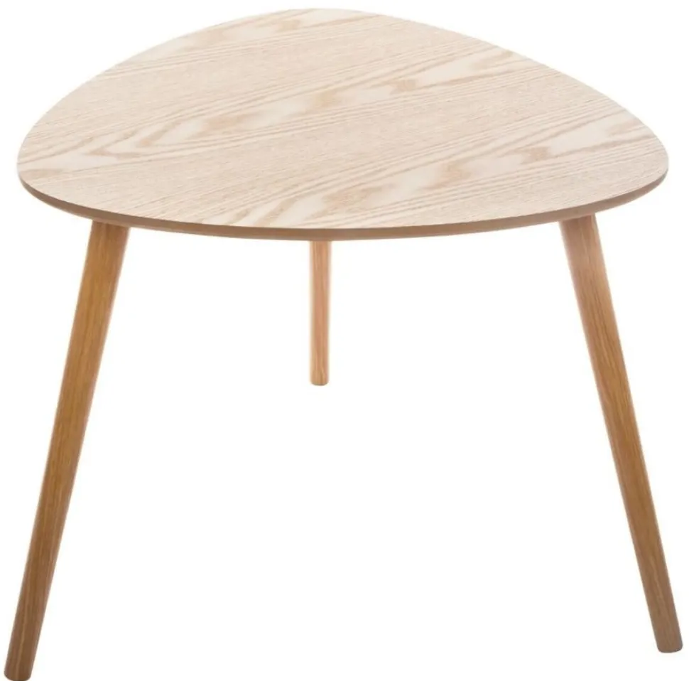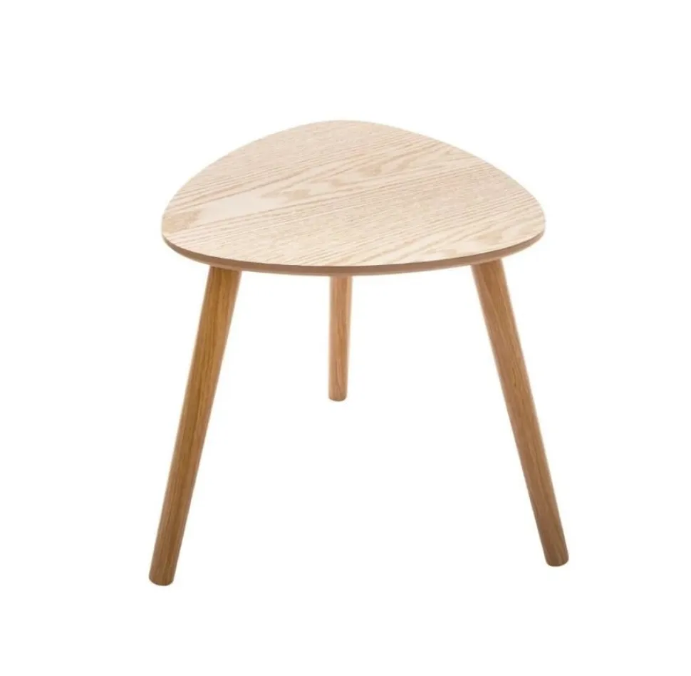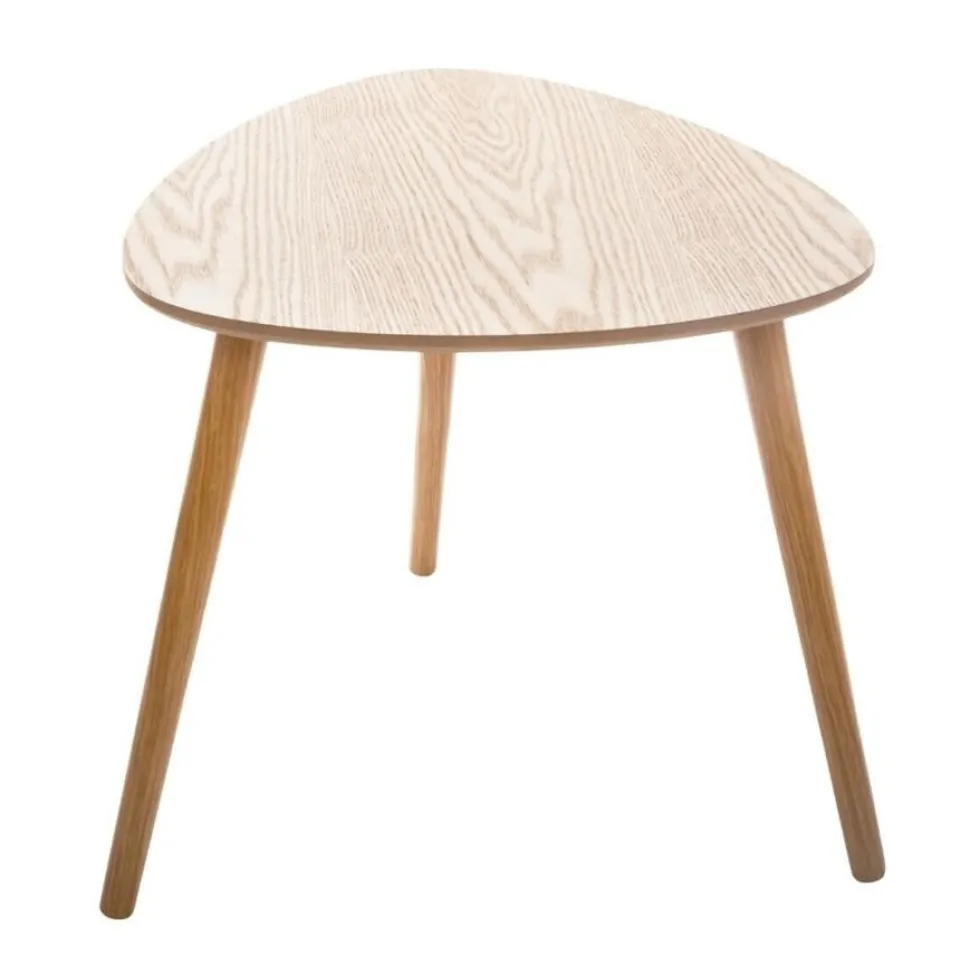 Zestaw trzech stolików w kolorze naturalnym, sprawdzi się w salonie obok sofy. Stoliki o trzech rozmiarach można ustawić razem lub używać całkiem osobno. Trwała płyta MDF w naturalnej okleinie, jest bezpieczna i odporna na zarysowania. Podstawą stolików są nogi z drewna dębowego.