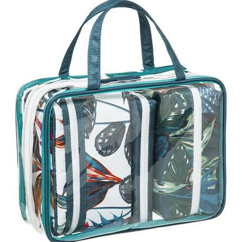 Każda z kosmetyczek w zestawie posiada zapięcie na suwak, co zapewnia łatwy i bezpieczny dostęp do ich zawartości. Dzięki temu wszystkie przedmioty są chronione przed przypadkowym wypadnięciem, co jest niezwykle praktyczne, zwłaszcza w podróży. Różne rozmiary kosmetyczek umożliwiają dostosowanie przestrzeni do przechowywania, od większych produktów, takich jak szampony i balsamy, po mniejsze akcesoria, jak biżuteria czy środki higieniczne. Wykonane z trwałego i wodoodpornego poliestru, kosmetyczki są odporne na wilgoć, co dodatkowo zabezpiecza ich zawartość.
