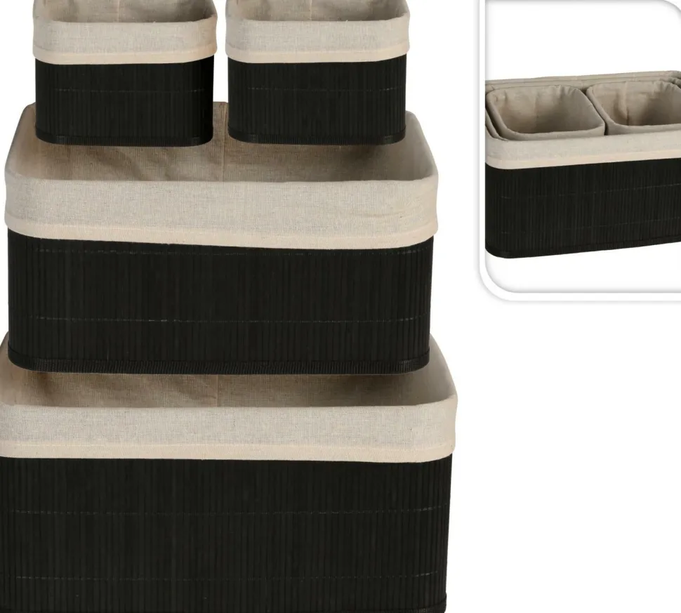 Uporządkuj swoją przestrzeń na dobre! Czy czujesz się przytłoczony bałaganem w swoim domu? Czy marzysz o uporządkowanej i zorganizowanej przestrzeni? Mamy dla Ciebie idealne rozwiązanie!Zestaw 4 dekoracyjnych koszy bambusowych pomoże Ci uporządkować różne przedmioty w elegancki i stylowy sposób.Kosze wykonane są z wysokiej jakości bambusa, który nie tylko dodaje uroku Twojemu wnętrzu, ale również jest trwały i wytrzymały. Materiał wewnętrzny to płótno, które zapewnia dodatkową ochronę dla przechowywanych przedmiotów. Dzięki temu możesz być pewien, że Twoje rzeczy są bezpieczne i chronione przed uszkodzeniami.Zestaw zawiera 4 kosze o różnych rozmiarach, dzięki czemu masz możliwość przechowywania różnych przedmiotów w zależności od ich wielkości. Duże kosze są idealne do przechowywania kabli elektronicznych, pilotów do telewizora czy detergentów do prania. Średnie kosze mogą pomieścić zabawki, książki czy inne drobne przedmioty. Natomiast małe kosze są doskonałe do przechowywania biżuterii, kluczy czy innych małych akcesoriów. Dzięki koszom będziesz miał mnóstwo miejsca do przechowywania przedmiotów, bez konieczności zajmowania zbędnego miejsca. Możesz je łatwo umieścić na półce, w szafie czy na biurku, dzięki czemu będziesz mieć szybki i łatwy dostęp do swoich rzeczy.Ich naturalny bambusowy design doskonale komponuje się z każdym wystrojem wnętrza, dodając mu elegancji i stylu. Niezależnie od tego, czy chcesz ukryć nieestetyczne kable elektroniczne czy uporządkować rozrzucone po sypialni zabawki, nasz zestaw koszy bambusowych z pewnością spełni Twoje oczekiwania. Oczym musisz wiedzieć przed zakupem? Uporządkowanie przestrzeni w domu Możliwość przechowywania różnych przedmiotów w jednym miejscu Estetyczny wygląd, który pasuje do każdego wystroju wnętrza