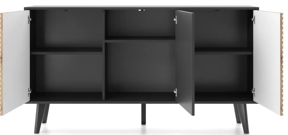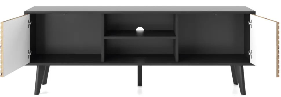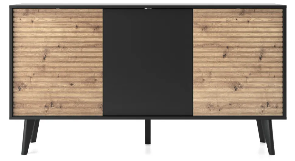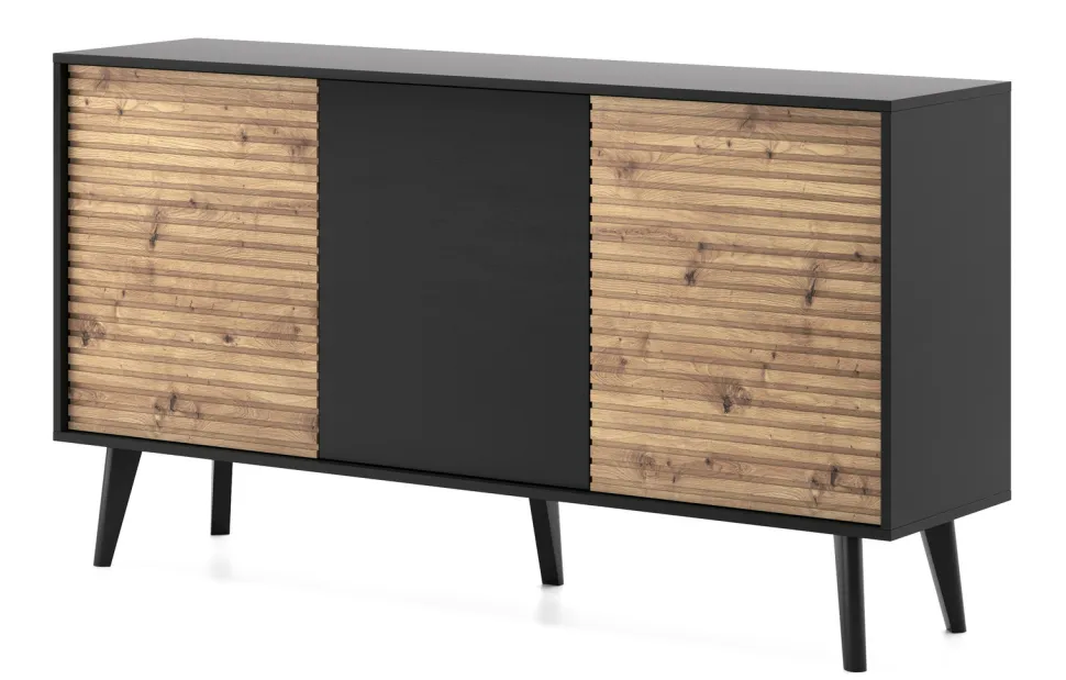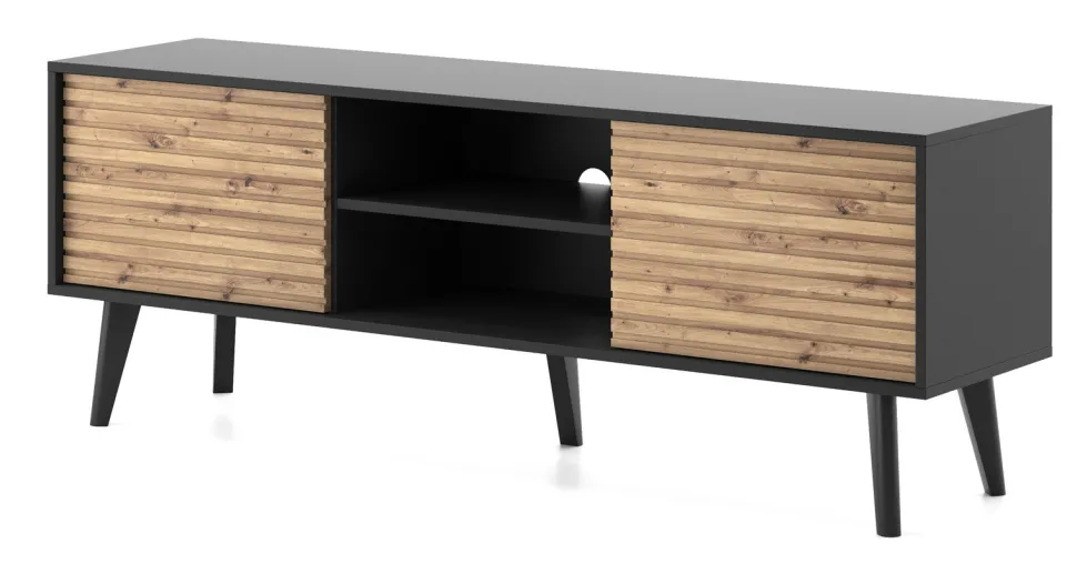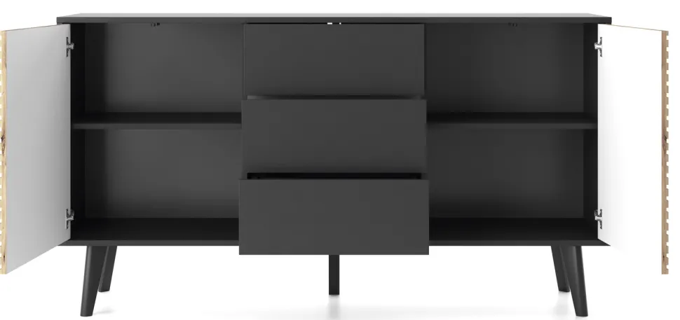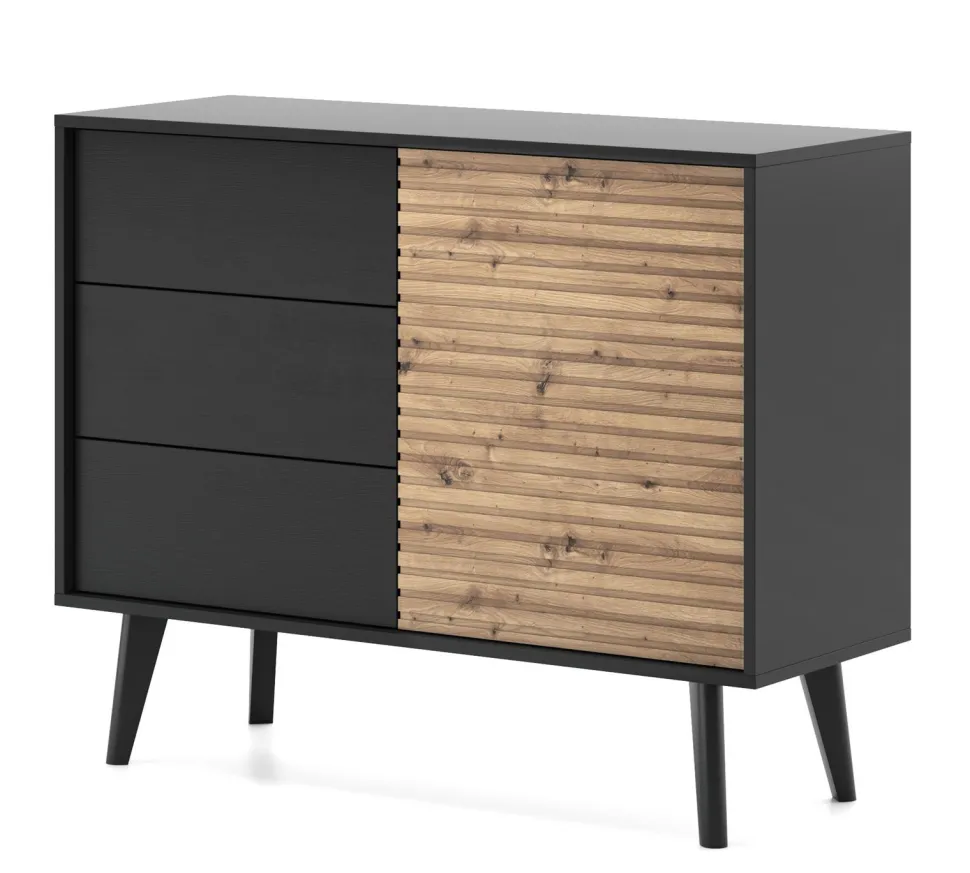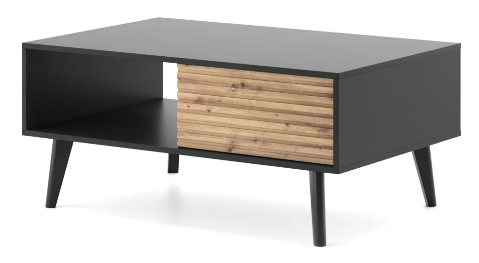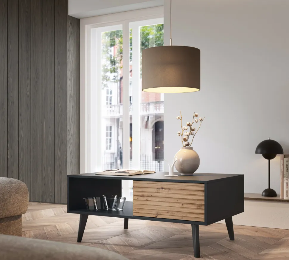 Zestaw mebli do salonu Tanga oferuje wyjątkową kombinację stylu loftowego i nowoczesnego minimalizmu, gwarantując niepowtarzalną atmosferę. Surowość industrialnej estetyki jest łagodzona ciepłem naturalnego drewna i energią czarnego koloru. Zestaw mebli do salonu dostarcza funkcjonalnych elementów, takich jak szafka RTV z frezowanymi frontami, stolik kawowy z dodatkową szufladą, a także komody w różnych rozmiarach i konfiguracjach, które zapewniają komfort i luksus, a jednocześnie spełnią rolę praktycznego miejsca do przechowywania. Każdy detal, od frezowanych frontów po przemyślaną formę, świadczy o najwyższej jakości zestawu do salonu Tanga. Inwestując w zestaw Tanga, inwestujesz w design, jakość i piękno, które przekształcą Twoje wnętrze w przestrzeń pełną komfortu, spokoju i unikalnego stylu.