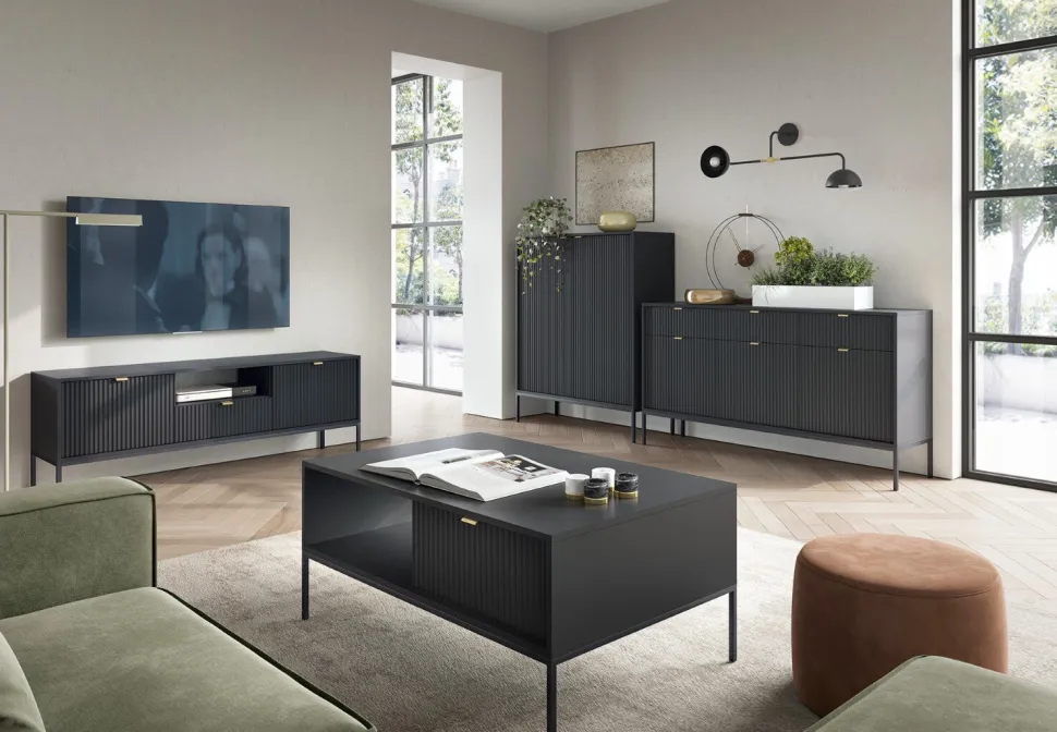 Zestaw mebli do sypialni Delicious łączy nowoczesność i elegancję, oferując meble o ryflowanych frontach, które są charakterystyczne i rozpoznawalne w świecie designu. Ta kolekcja spełnia potrzeby osób ceniących funkcjonalność, estetykę i wysoką jakość. Meble Delicious wykonane z płyty drewnopodobnej z okleiną odporną na uszkodzenia, dodadzą niepowtarzalnego uroku każdemu wnętrzu. Kolekcja oferuje szeroki wybór modeli, idealnych do różnych pomieszczeń — od salonu, przez sypialnię, aż po pokój młodzieżowy czy przedpokój.