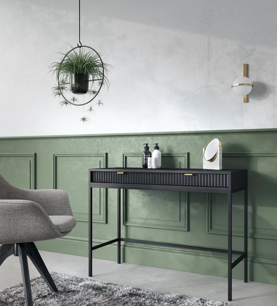 Kolejnym elementem kolekcji Delicious jestfunkcjonalna toaletka. Oferuje ona nie tylko przestrzeń do przechowywania kosmetyków i biżuterii, ale także komfortowe miejsce do codziennych rytuałów pielęgnacyjnych. Szuflady zapewniają wystarczająco dużo miejsca do organizacji wszystkich niezbędnych przedmiotów, a duży blat pozwala na ustawienie lustra. Jest to mebel, który łączy w sobie estetykę i użyteczność, a jego obecność w sypialni gwarantuje poranek pełen uroku i dobrego samopoczucia.