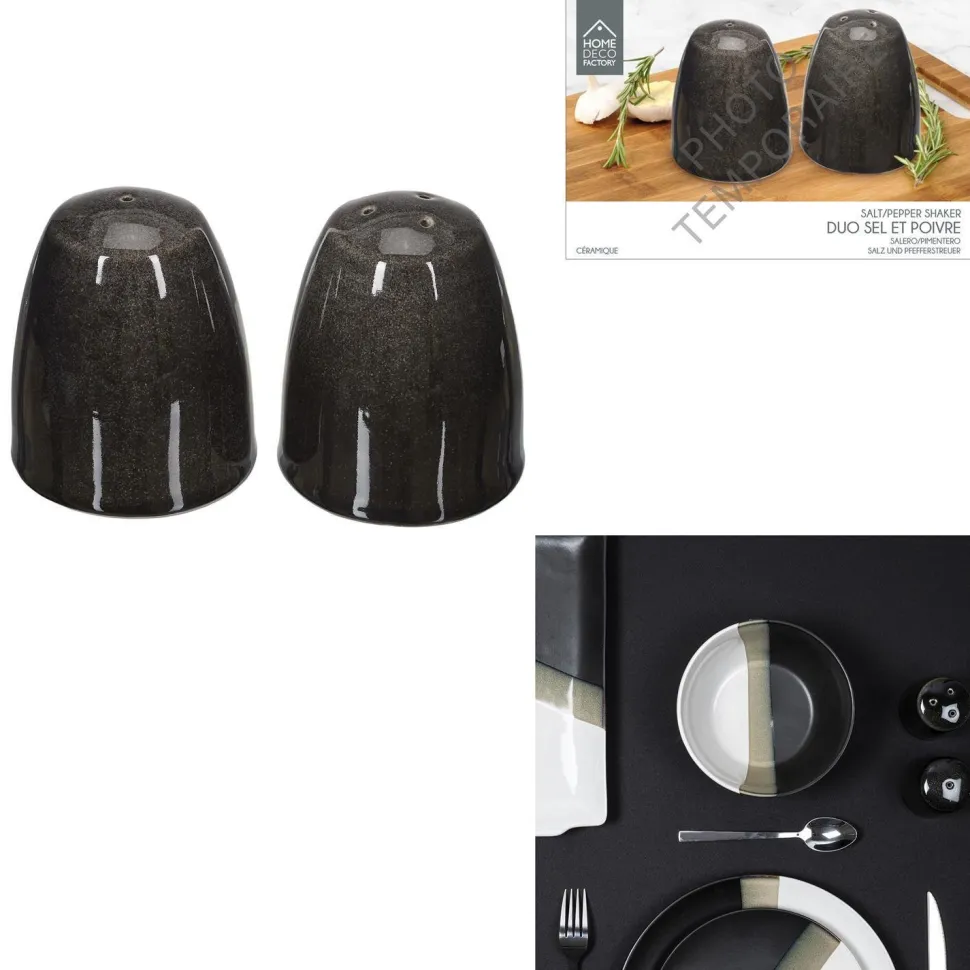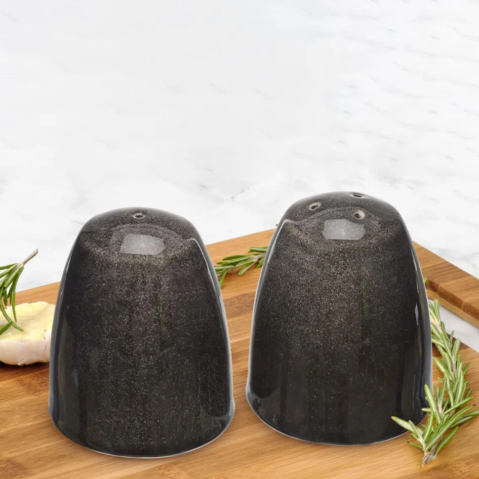 Zestaw Negro, w skład którego wchodzą ceramiczna solniczka i pieprzniczka w kolorze czarnym, to praktyczne akcesorium i stylowa dekoracja w jednym. Idealne do codziennego użytku, jak i na ważne okazje. Pięknie prezentują się na stole w jadalni lub salonie. Tworzą ciekawą kompozycję z pozostałymi elementami serii Negro. Można myć w zmywarce.