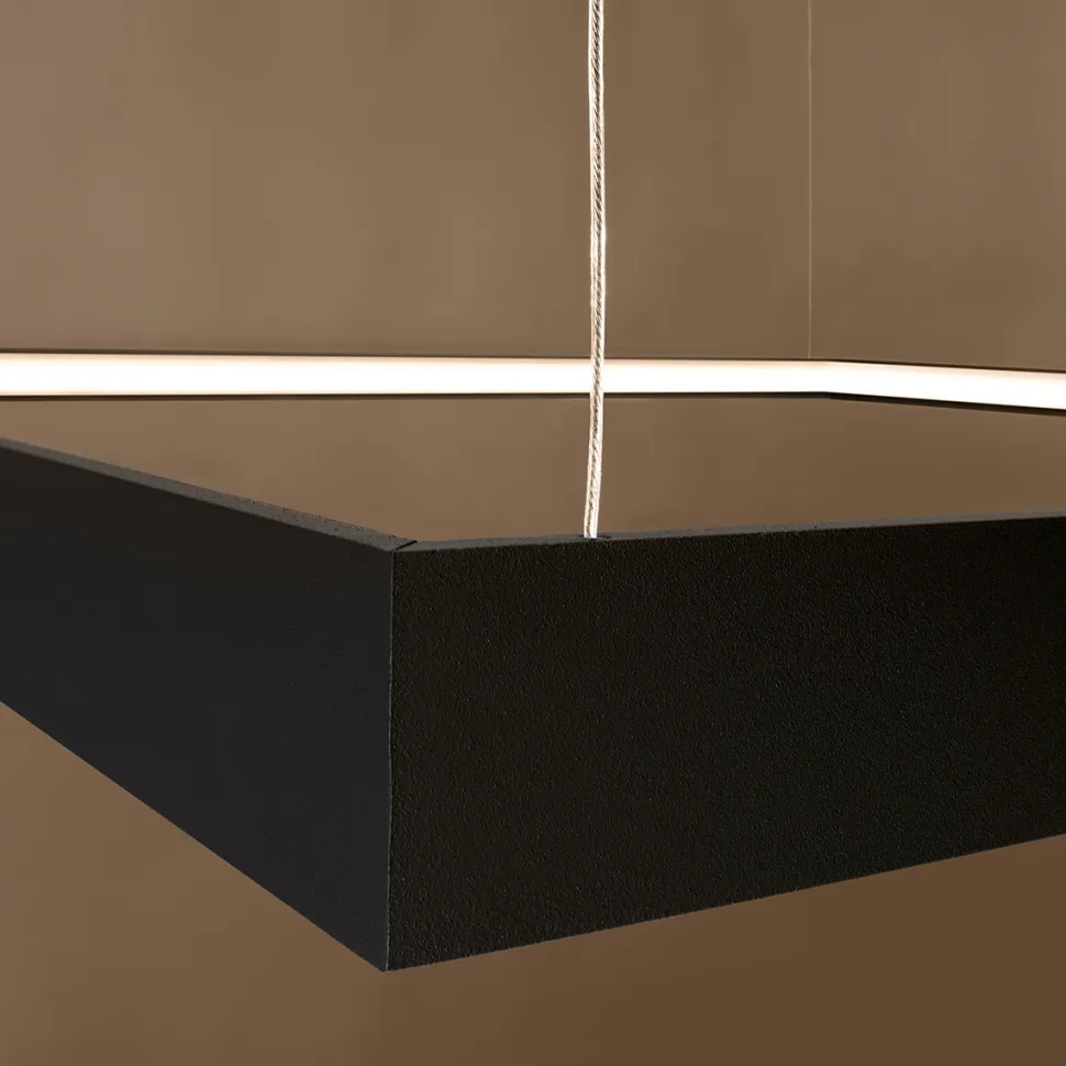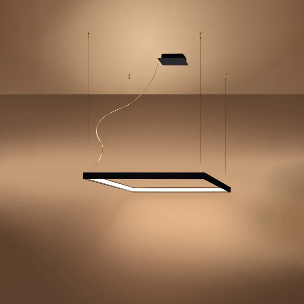 Żyrandol Nelya to lampa, która bardzo wydajnie oświetli przestrzeń, jednocześnie będąc ozdobą i minimalistycznym dodatkiem. Kwadratowy kształt lampy sprawia wrażenie ażurowego i unoszącego się w powietrzu dzięki systemowi linek, które prawie niewidocznie podtrzymują go. Przedmiot dostępny jest w trzech eleganckich kolorach: złotym, białym i czarnym. Przez swój industrialny design pasował będzie zarówno do salonów, ale również nad stół jadalny czy do przedpokoju. Sprawdzi się także jako dodatek do przestrzeni restauracyjnej, hotelowej czy sklepu.