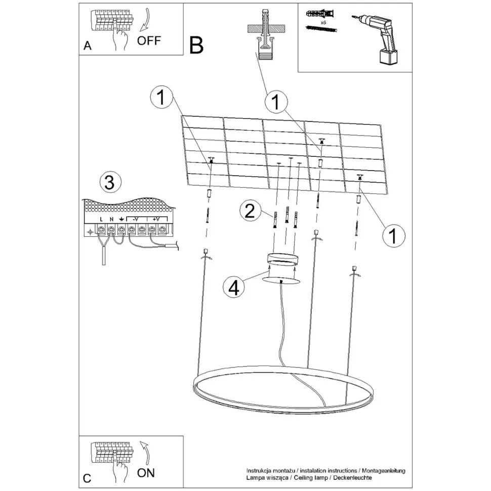 Żyrandol Rio to przede wszystkim funkcjonalność. Okrągła lampa to gwarantwydajnego i równomiernego rozprowadzenia światłapo przestrzeni, a dołączona w zestawie żarówka LED wystarczy na cały czas użytkowania lampy. Do wyboru otrzymujesz trzy rozmiary lampy: 55, 78 i 110 cm w średnicy. Dostępne są również różne kolory światła żarówki. W zależności od potrzebnej barwy, w zestawie dołączona może byćżarówka o ciepłym (3000K) lub zimnym (4000K) odcieniubieli. Ten nowoczesny i elegancki żyrandol pasował będzie zarówno do salonu, jak też do jadalni czy przedpokoju. Świetnie sprawdzi się również w hotelu, restauracji czy sklepie.