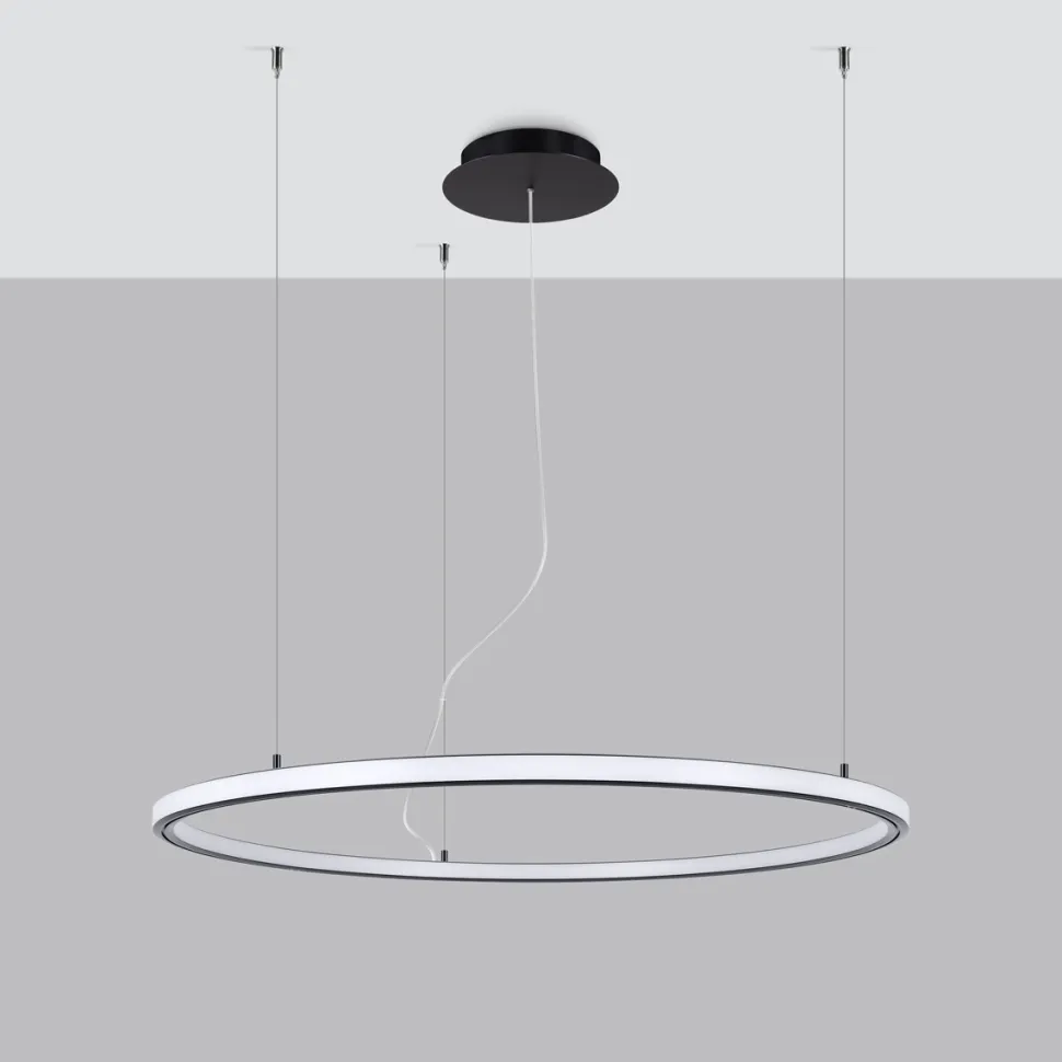 Zapewnij swojemu wnętrzu niepowtarzalny charakter z nowoczesnym żyrandolem RISA. Ten elegancki, czarny żyrandol nie tylko oświetla pomieszczenie, ale również dodaje mu wyjątkowego stylu. Wykonany z aluminium, wyposażony w moduł LED, tworzy przyjemną atmosferę dzięki kojącemu światłu o temperaturze 3000K. Jego delikatna, rozświetlona obręcz nadaje pomieszczeniu przytulności i ciepła.
