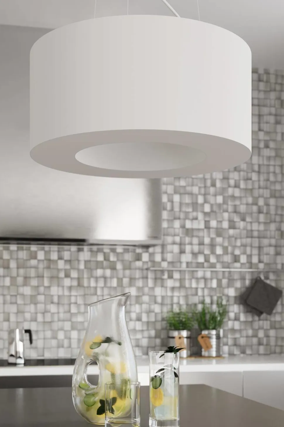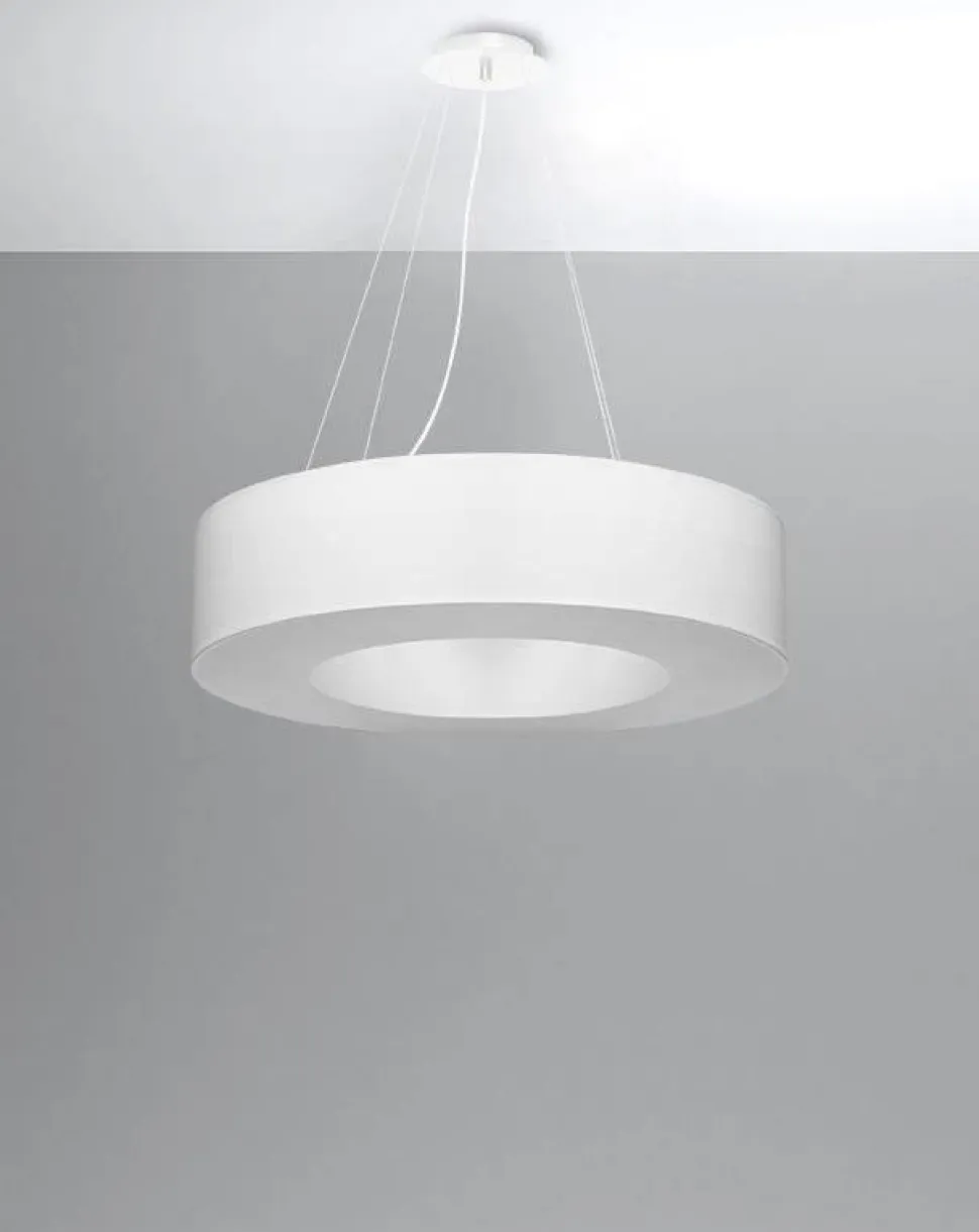 Żyrandol Saturno to idealny wybór jeśli szukasz neutralnego i wydajnego przedmiotu. Okrągła, cylindryczna lampa jest subtelnym i eleganckim dodatkiem do wielu wnętrz takich jak salon, sypialnia, pokój dziecięcy czy restauracja lub hotel. Dostępna jest w trzech rozmiarach szerokości: 50, 70 i 90 cm. W każdej z opcji dostępne jest również rozróżnienie na dwa kolory– czarny i biały. Biała lampa będzie bardziej neutralnym wyborem, a wersja w kolorze czarnym stanowić będzie kontrastującą ozdobę podkreślającą styl wnętrza.