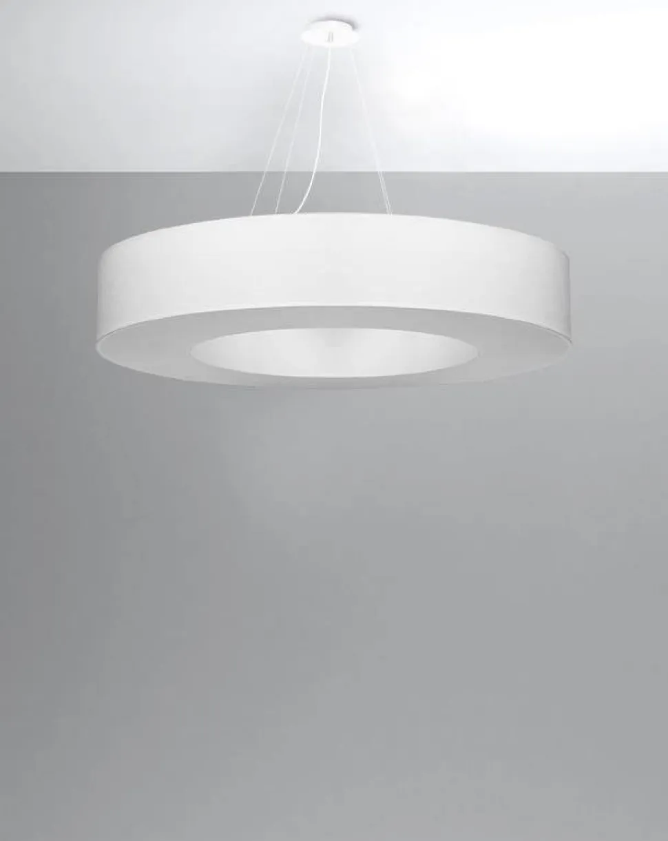Żyrandol Saturno to idealny wybór jeśli szukasz neutralnego i wydajnego przedmiotu. Okrągła, cylindryczna lampa jest subtelnym i eleganckim dodatkiem do wielu wnętrz takich jak salon, sypialnia, pokój dziecięcy czy restauracja lub hotel. Dostępna jest w trzech rozmiarach szerokości: 50, 70 i 90 cm. W każdej z opcji dostępne jest również rozróżnienie na dwa kolory– czarny i biały. Biała lampa będzie bardziej neutralnym wyborem, a wersja w kolorze czarnym stanowić będzie kontrastującą ozdobę podkreślającą styl wnętrza.