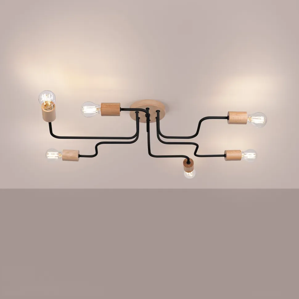 Żyrandol TIMBO 6 w kolorze czarnym to wyjątkowe połączenie elegancji i nowoczesności. Jego minimalistyczny design z nutą skandynawskiego stylu sprawia, że świetnie wpasuje się w każde wnętrze, dodając mu ciepła i wyrafinowanej nowoczesności. Wykonany z metalu i naturalnego drewna, żyrandol jest nie tylko praktyczny, ale również estetyczny. Z 6 źródłami światła, zapewnia optymalne oświetlenie każdego pomieszczenia, od salonu po sypialnię czy gabinet.