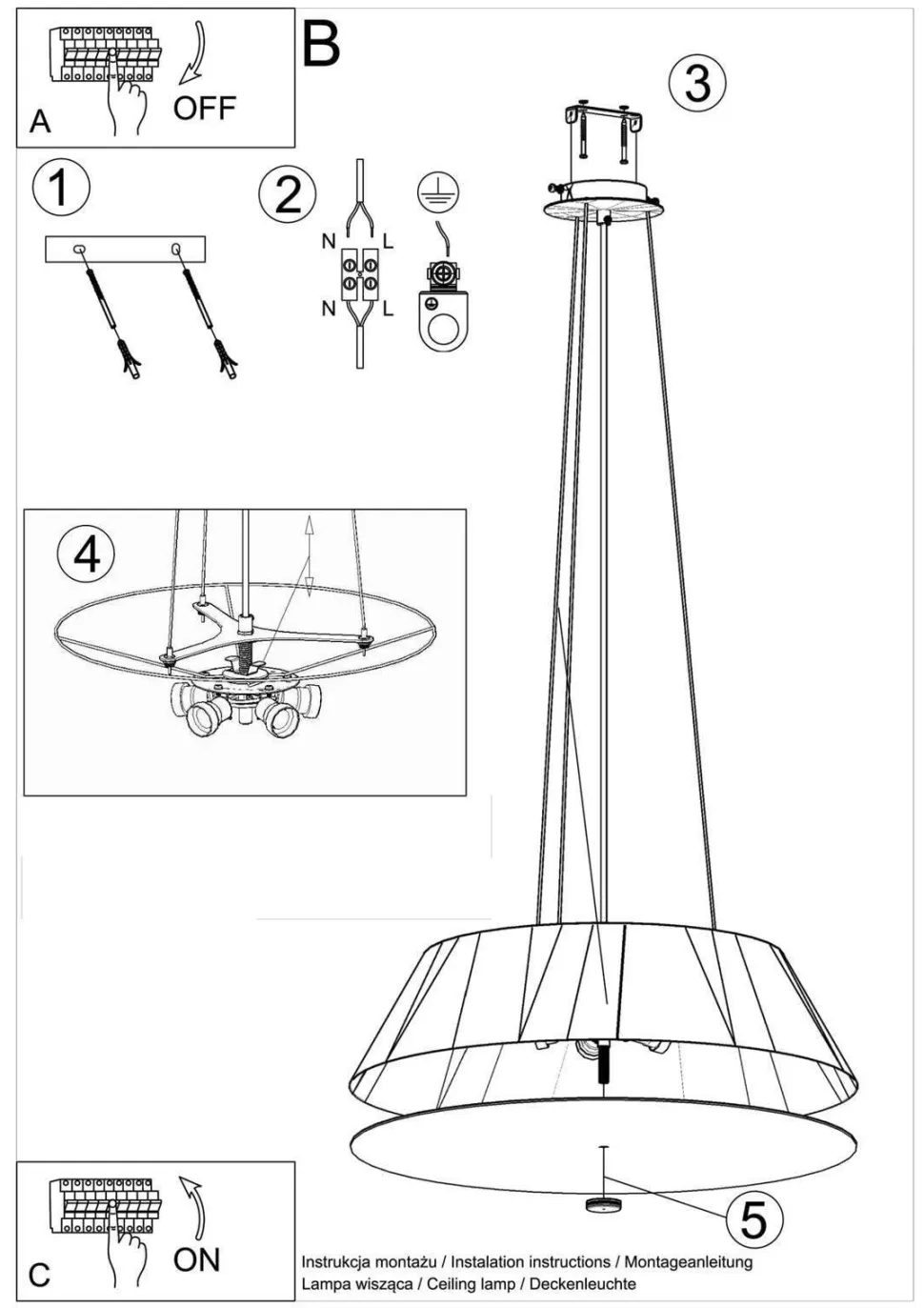 • 5 źródeł światła, oprawa żarówki E27 o max. mocy 60W